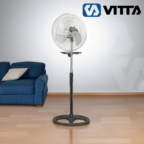 El Ventilador Vitta 3 en 1 (18", 90 W) refresca como quieras: en pie, pared o piso. Con 3 velocidades, oscilación y cabezal inclinable, dirigís el aire justo donde lo necesitás.